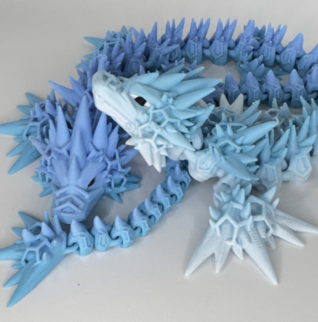 Elke Adult Void Sea Draak wordt vervaardigd met hoogwaardige materialen en verfijnde details. Het blauw-witte kleurverloop maakt elke draak uniek. Door de natuurlijke variaties in het filament heeft elk exemplaar zijn eigen exclusieve charme en uitstraling.
